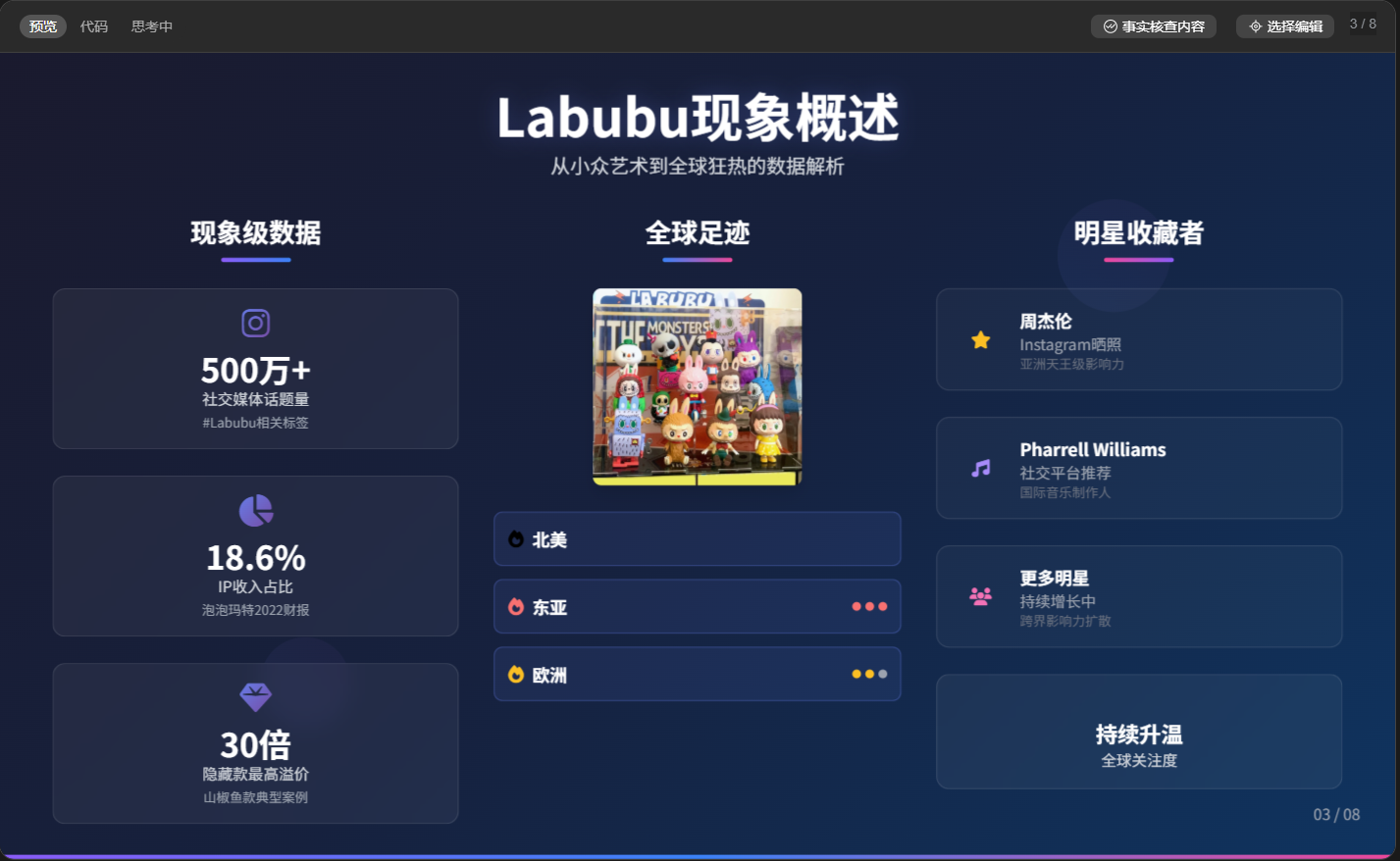 它对数据的展现形式会更多样,关于Labubu的图片素材也是找到很多并用到了。