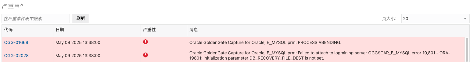 OGG 在源端添加抽取进程,进程会读取内存参数,如果内存参数有设置闪回参数的 db_recovery_file_dest_size 值,但是没有设置 db_recovery_file_dest 值,那就会导致进程中断,报错: