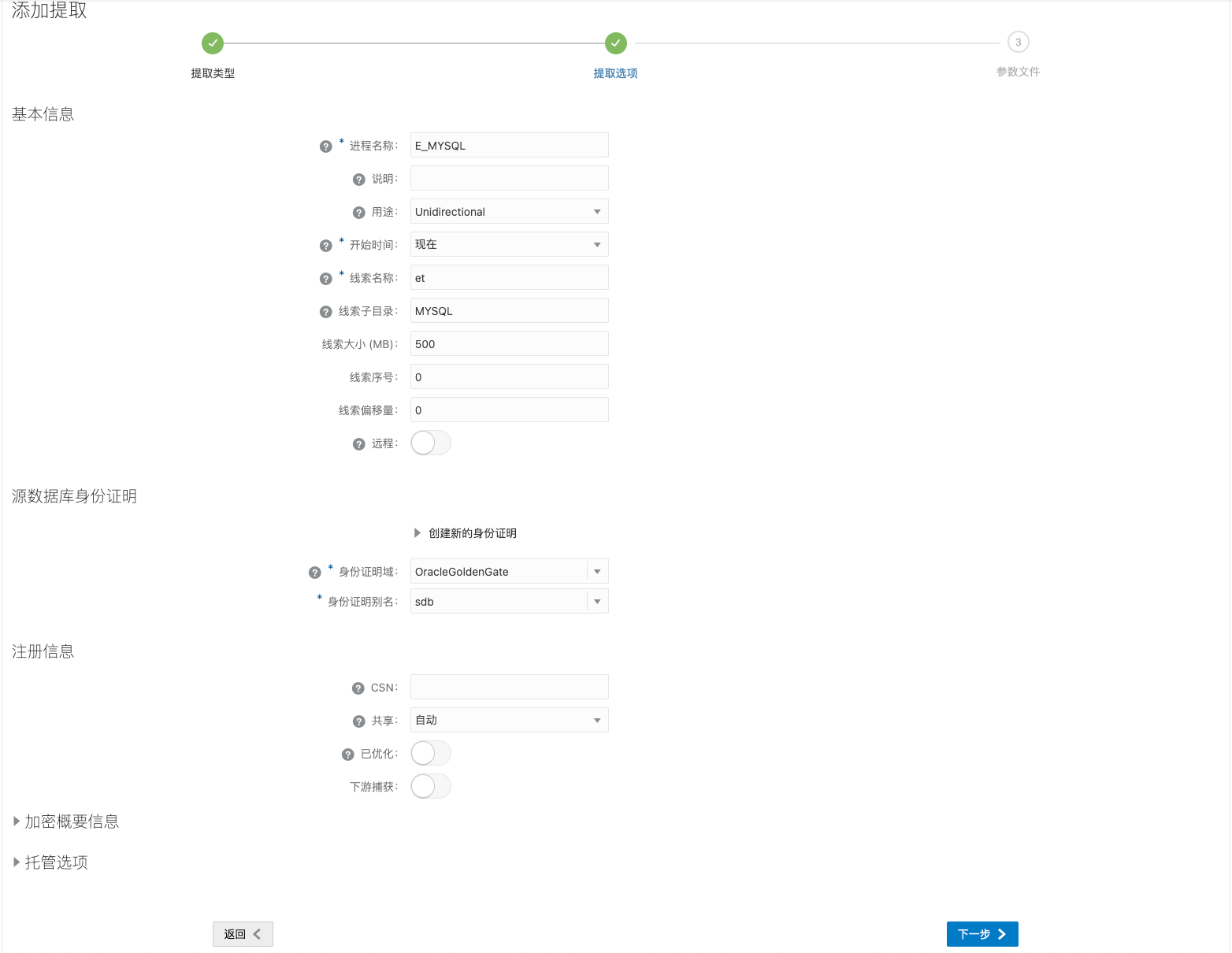 自定义一个抽取进程名称,选择源端的 SDB,填写 Trial 名称(自定义):