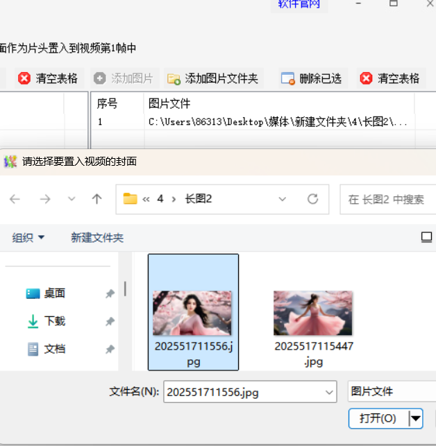 3.导入统一封面图片:点击【添加图片】按钮,选择一张预设的JPG或PNG格式封面图片(分辨率建议与视频匹配),图片将作为所有视频的新封面素材。