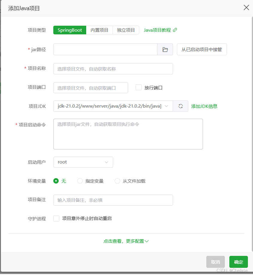 Spring Web(构建RESTful接口)推荐使用Java 17+版本以获得最佳兼容性。配置JVM参数(推荐-Xmx512m)在宝塔「Java项目」模块添加新项目。Ollama(本地模型集成支持)上传生成的.jar文件。设置运行端口为9000。安全组放行9000端口。