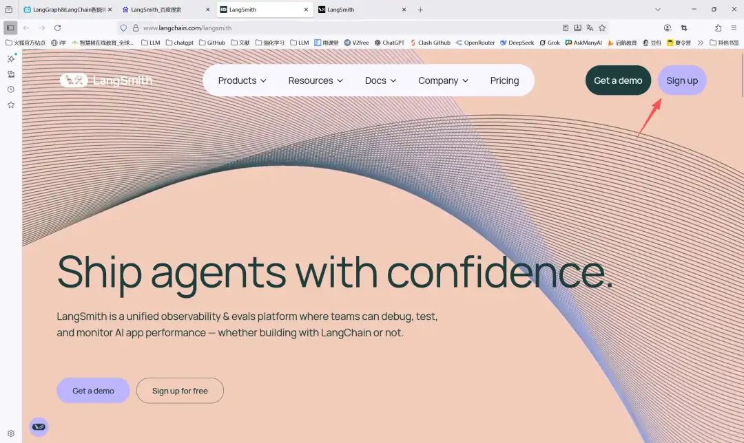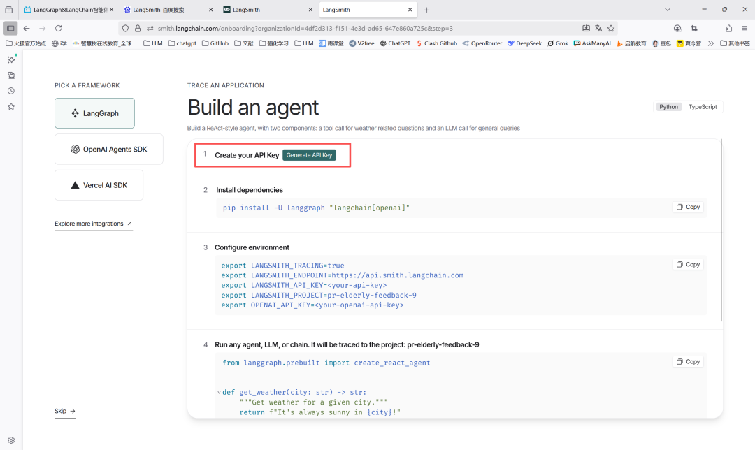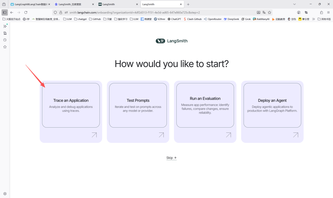 - LangSmith也需要先登录LangSmith官网进行注册,然后选择开启项目追踪功能
