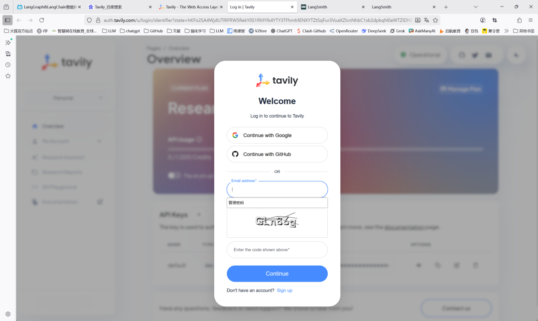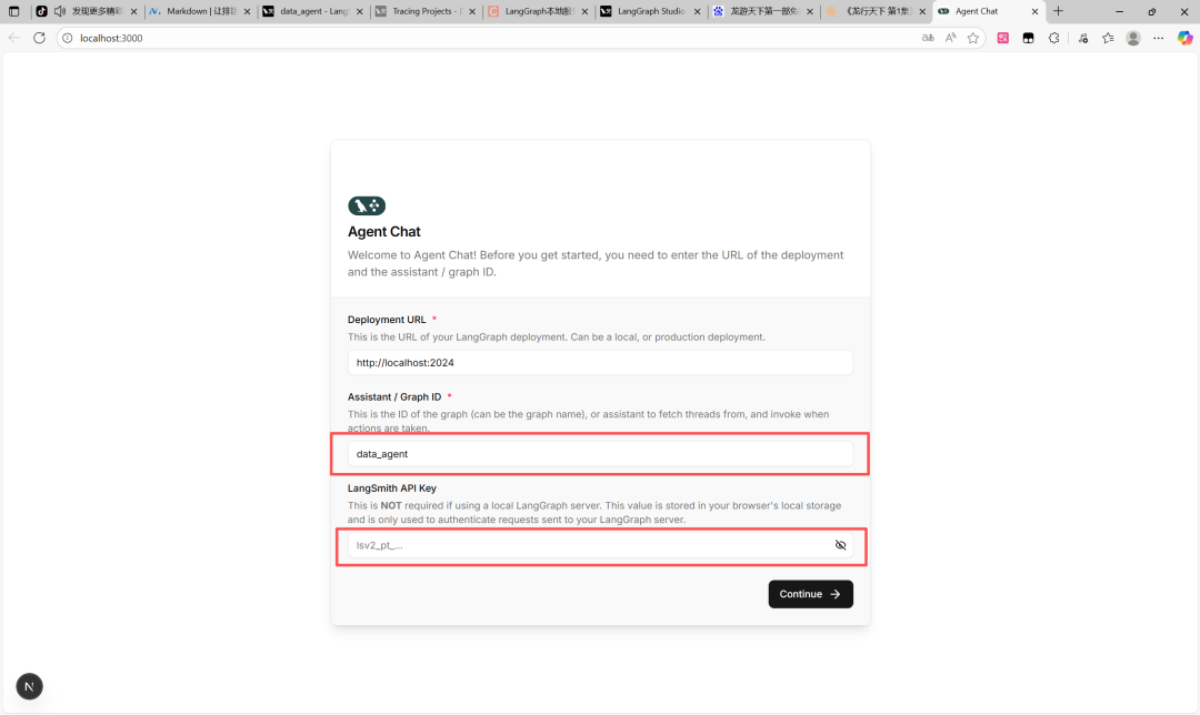 登陆时输入对应的agent名字以及可选输入LangSmith的API Key