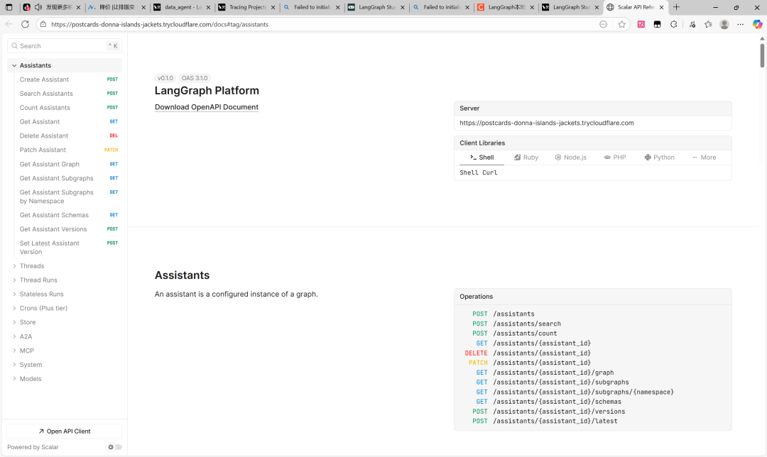 需要远程访问或避免浏览器限制,可以使用 --tunnel 参数。在运行langgraph dev --tunnel 在下载 Cloudflare 的 cloudflared 可执行文件时访问 GitHub 超时(WinError 10060)。