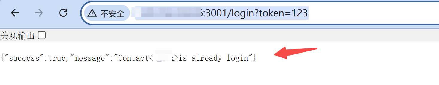 当然,也可以通过如下地址:http://129.150.39.xxx:3001/login?token=123,实现登录 or 查看登录情况。下图显示已经登录,如果没登录,这里会出现二维码。