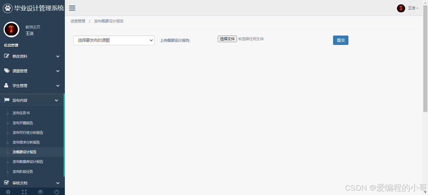 关键词:毕业设计管理系统、Spring Boot、Vue.js、文档管理、进度跟踪
