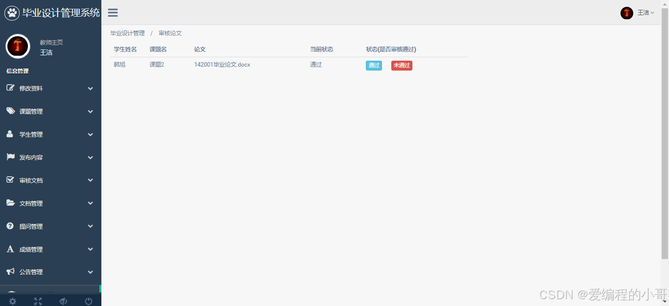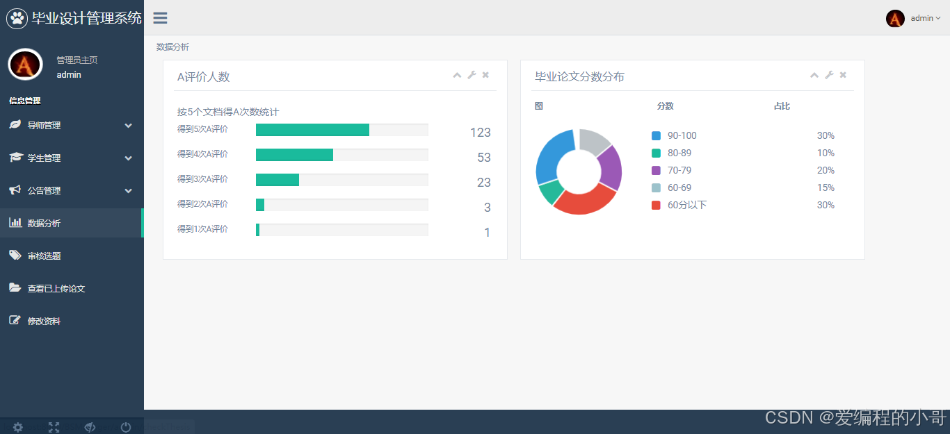 数据统计:自动生成文档提交量、课题通过率等报表,辅助教学决策。