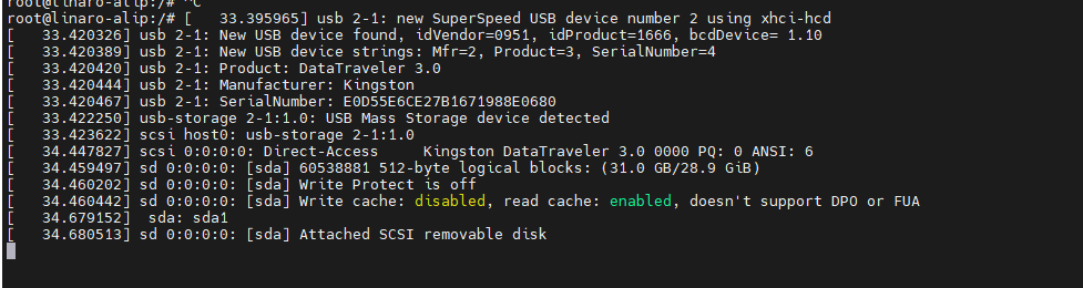 步骤二:将U盘插入开发板中并检测是否挂载成功