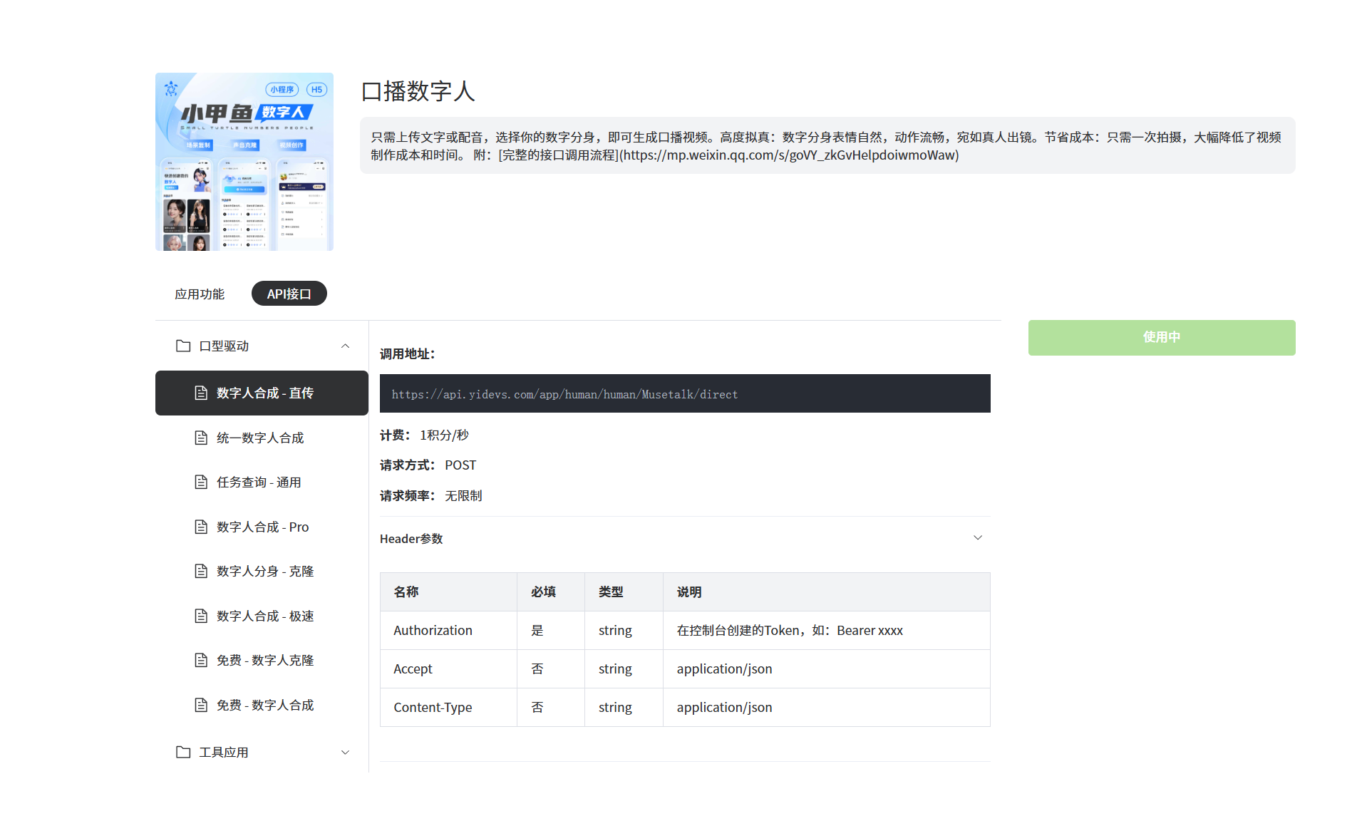 这两个项目都是基于小甲鱼数字人的API进行开发的项目,我也看了他们的文档,挺丰富的,基本上涵盖了数字人开发所需要的大部分功能,直接通过Http调用即可实现,即使是刚入行的程序员,也可以轻松完成api接口的对接。