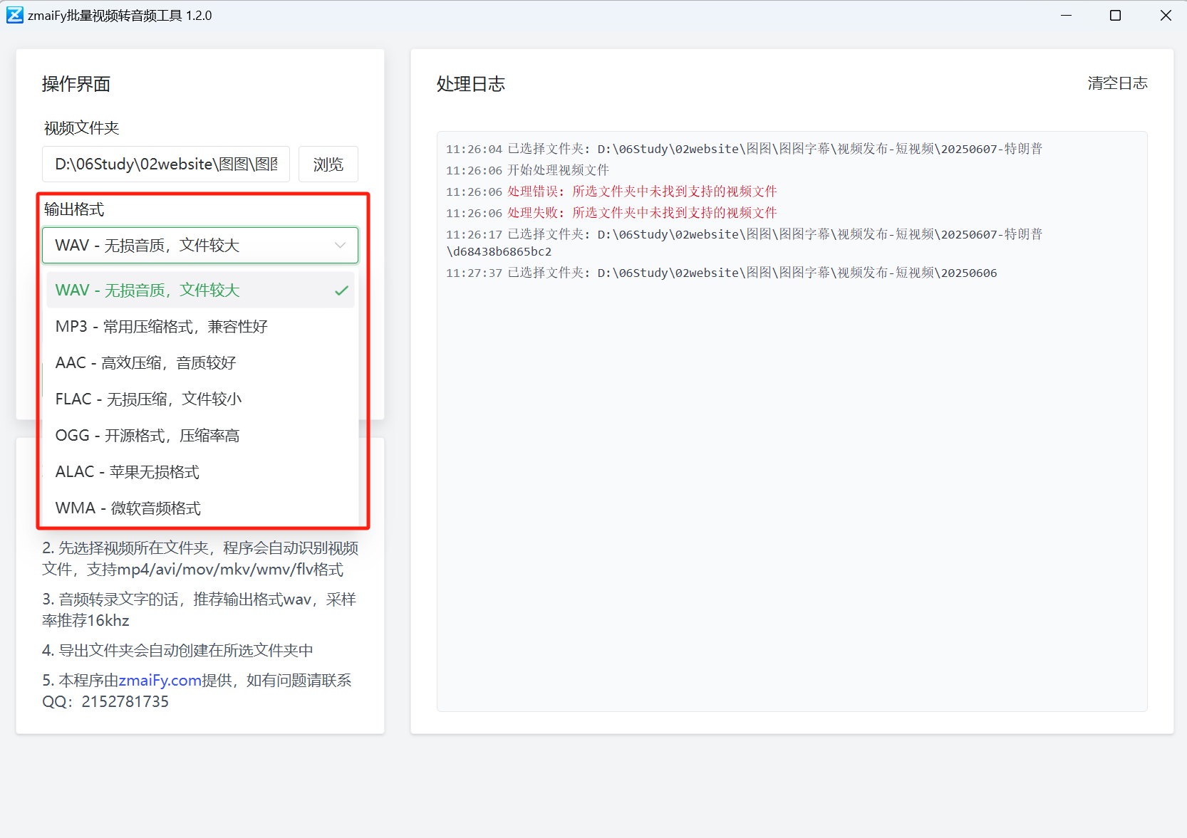 图5 zmaiFy 视频转音频工具使用