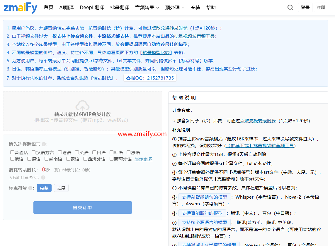 打开 www.zmaify.com ,进音频转录页面(登录账号,VIP 才能用转录功能哈 )。