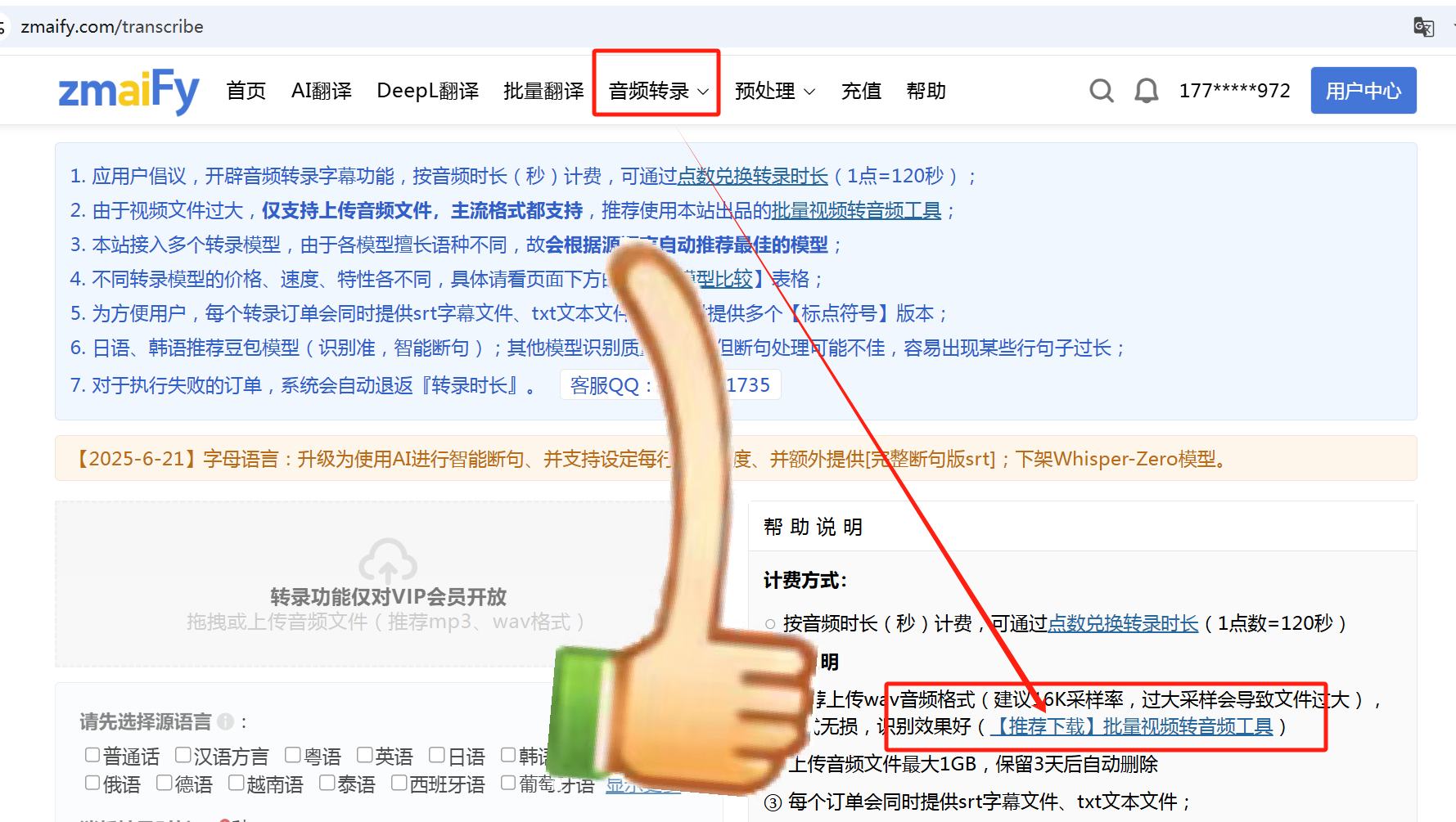 图9 zmaiFy 音频转录VIP使用