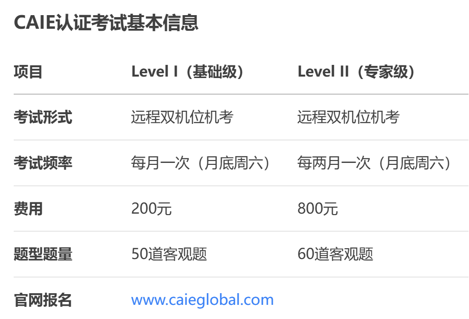 2025年人工智能人才缺口超4000万,CAIE认证凭借政企双认可、阶梯式培养、就业闭环支持三大优势,成为跨领域从业者的优选。Level II(800元):需通过Level I,每两月考核计算机视觉/NLP高阶技能。Level I(200元):零基础适用,每月机考,聚焦AI基础与Prompt技术。低成本高兼容:Level I费用仅为同类认证1/7,全年12次考试机会。银行/通信/制造领域明确标注“