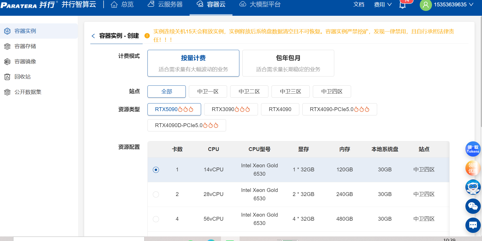 算力选择:MAAS提供从单卡(如A100 40G)到千卡级(如H100集群)的灵活配置,支持按量付费和包年包月两种模式。我们选择64张A100 80G进行测试。