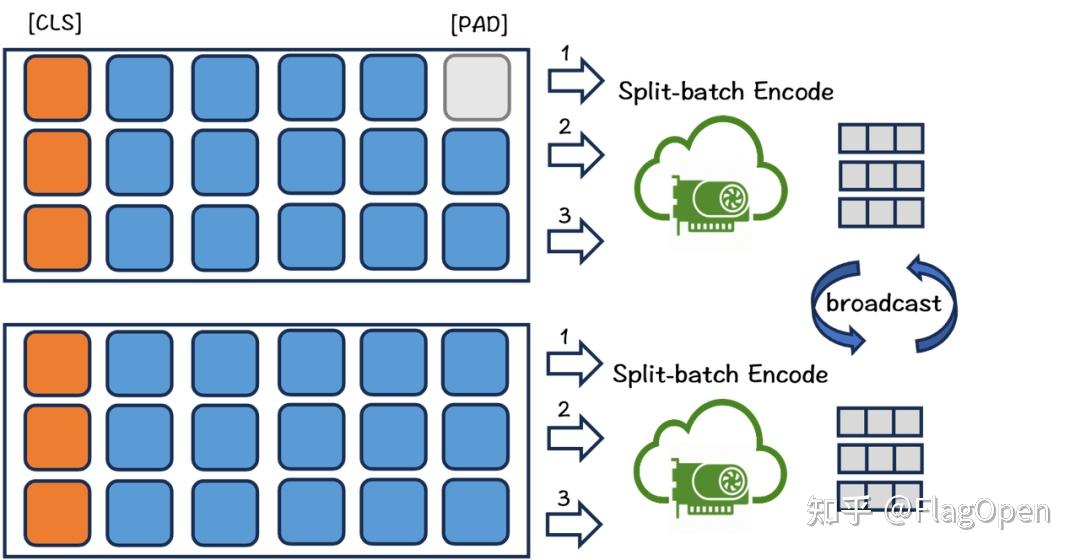 - 为了减少文本建模时的显存消耗,我们将一批数据分成多个小批。对于每个小批,我们利用模型编码文本,收集输出的向量同时丢弃所有前向传播中的中间状态,最后汇总向量计算损失。通过这种方式,可以显著增加训练的batch size。该方式简单而高效,当建模长文本或者向量模型很大时,都可以采用此来扩大batch size。