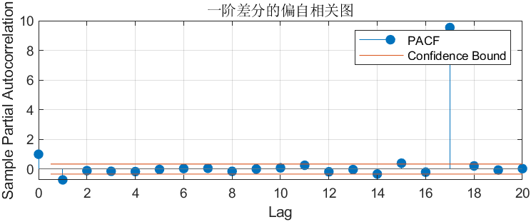 - 到某个 lag 后竖线落在红线内:说明更远的滞后项已无显著关联。