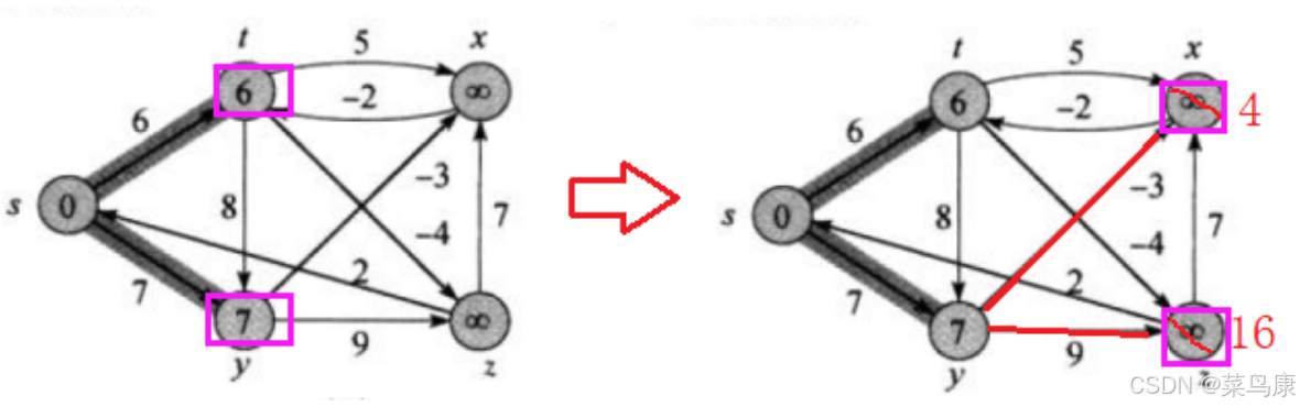 然后对y的相邻顶点进行松弛如下