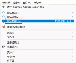 1、找到菜单栏的Parasoft,然后选择测试配置;