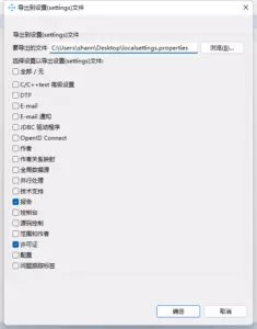 (3)选择要导出的设置,比如报告、许可证等,然后输入要导出的路径文件,应用之后设置就能导出成文件了。
