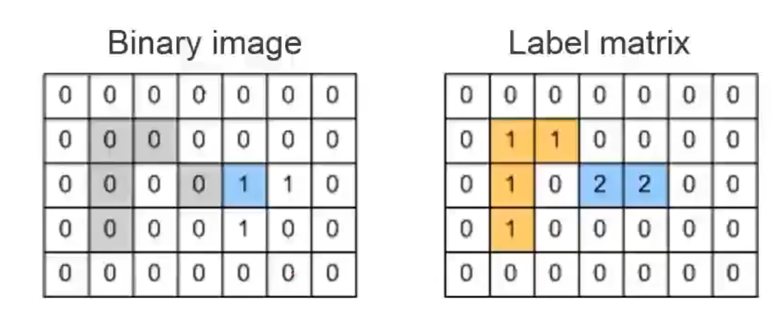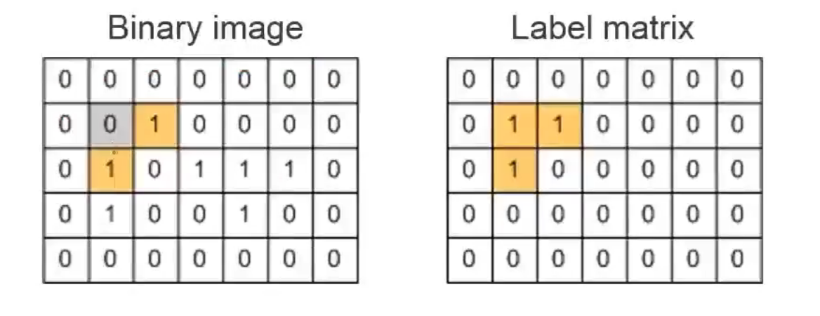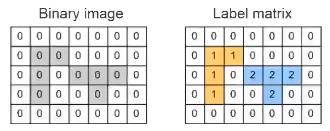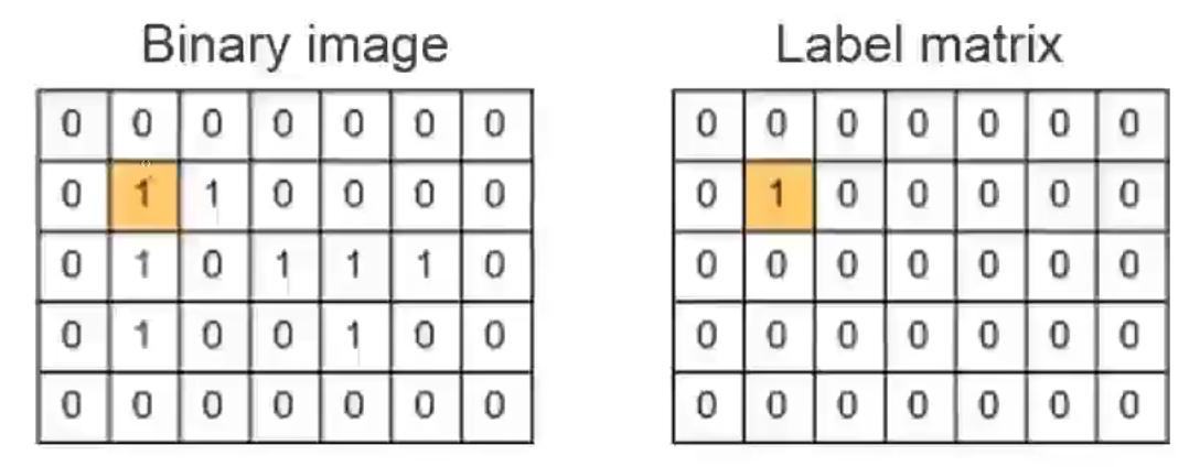 2. 遍历二值化图像(Binary image)找出其中值为1的像素(Pixel),在标记矩阵中相同位置处赋值。