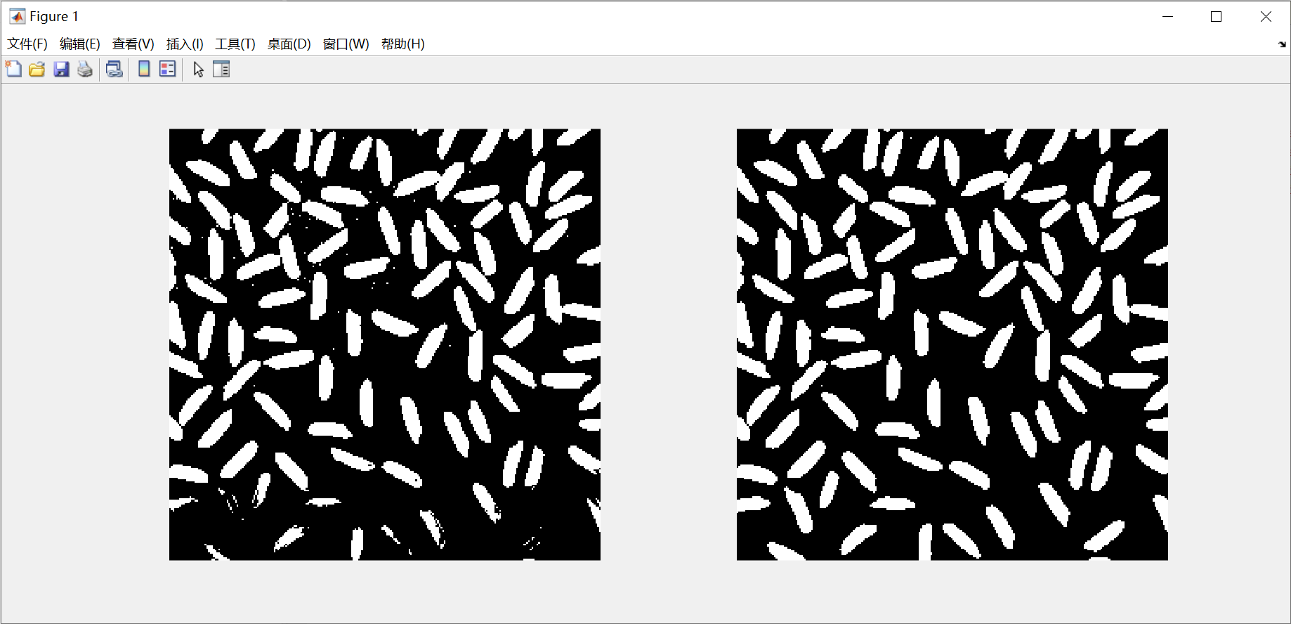 subplot(1,2,2);imshow(bw);%位置二房二值化结果