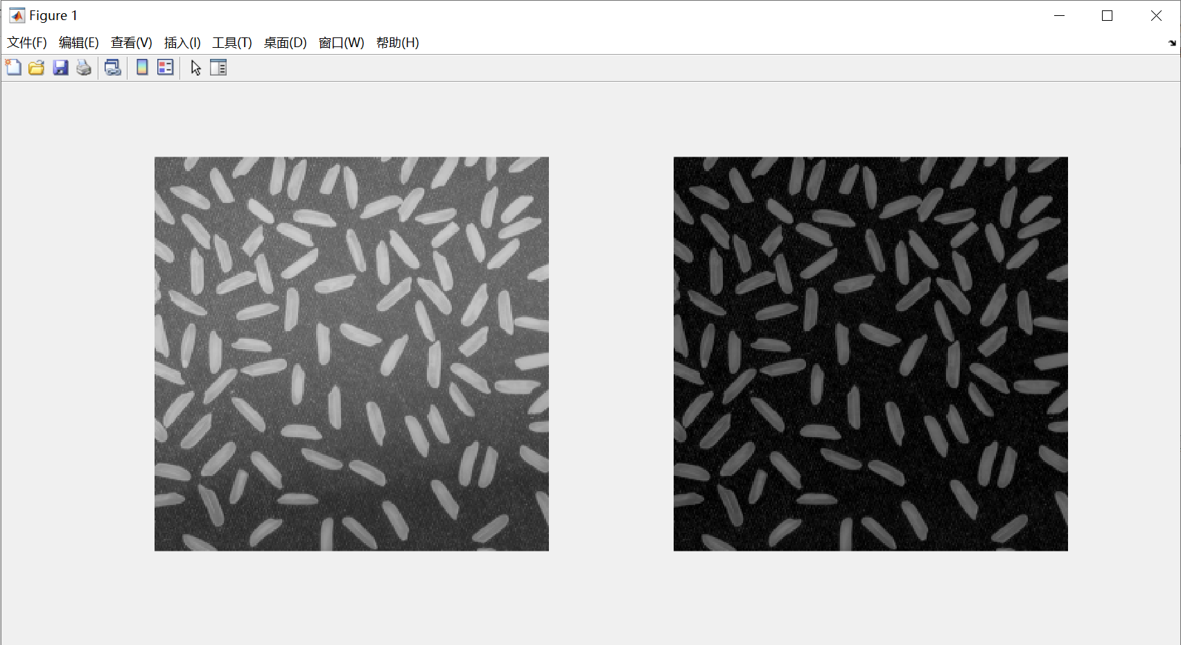 subplot(1,2,1);imshow(I);%位置一放rice.png
