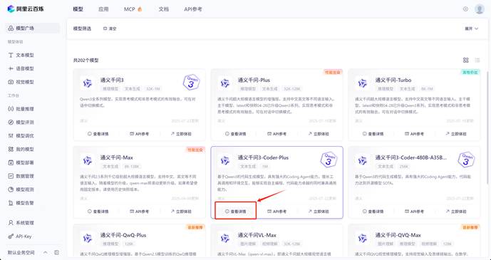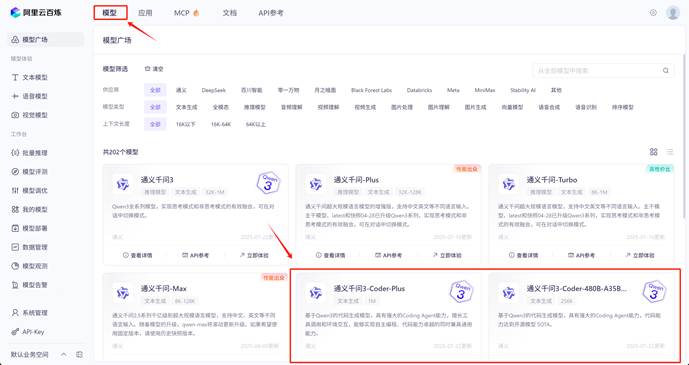 - 模型名称,如qwen3-coder-plus
