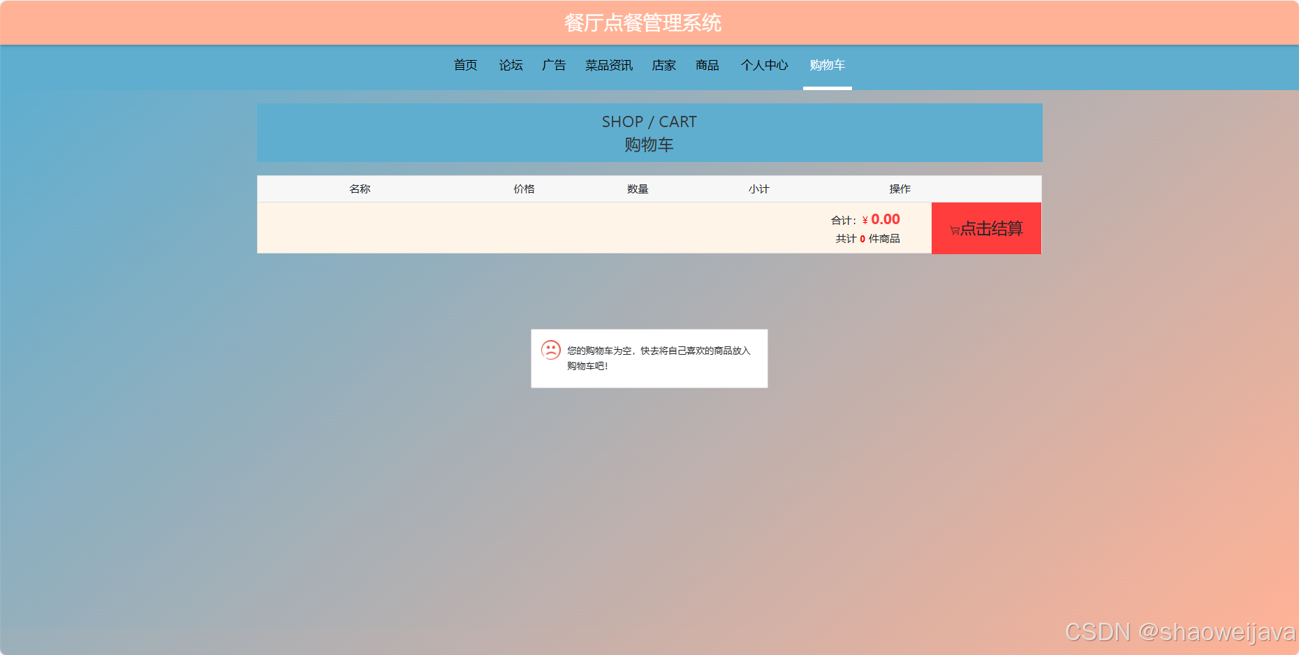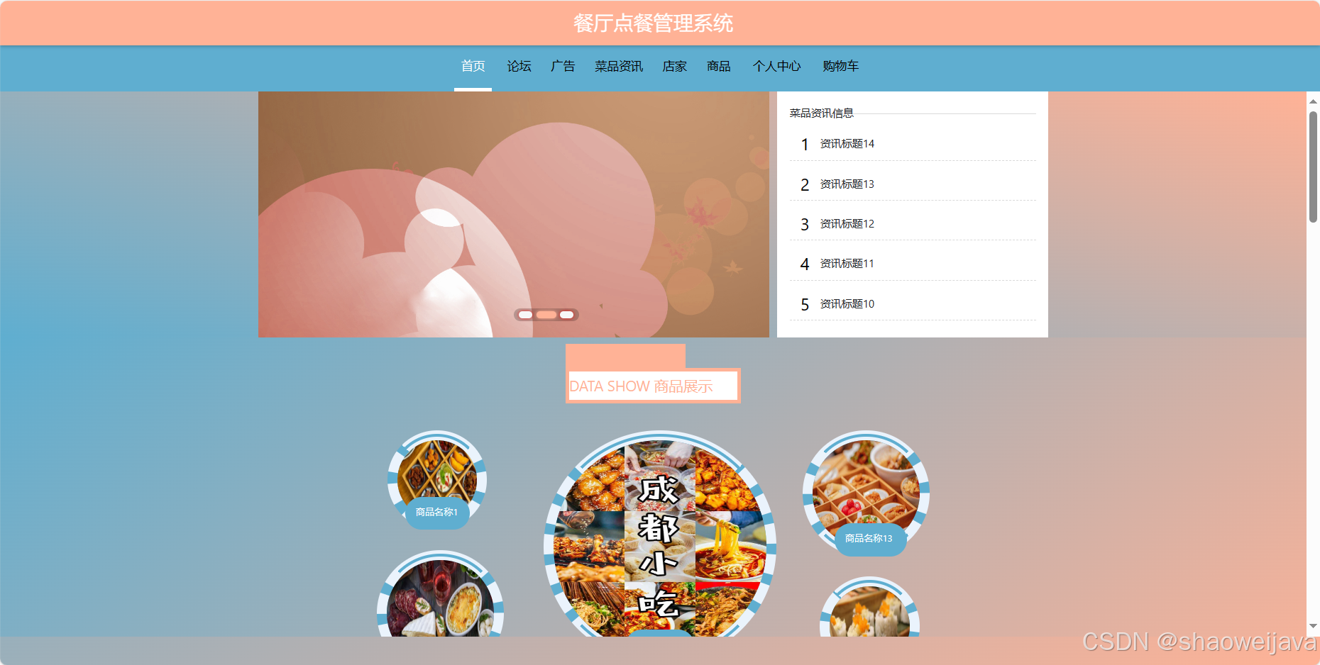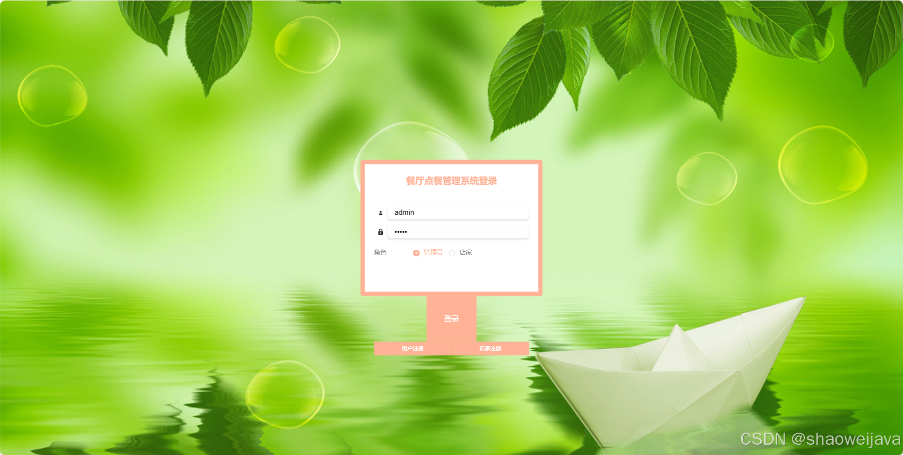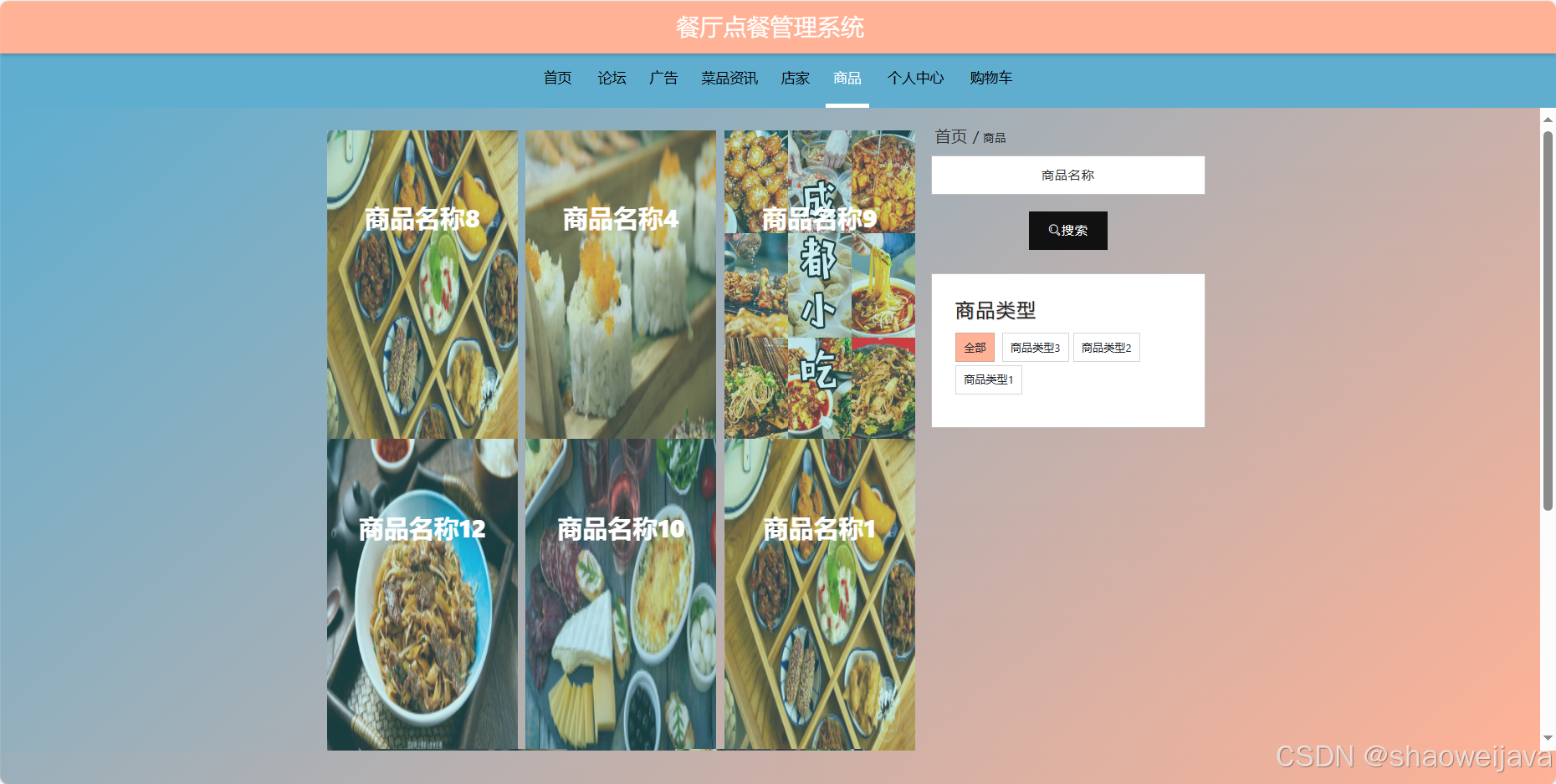 基于SpringBoot的餐厅点餐管理系统,系统包含三种角色:管理员、用户,店家 ,系统分为前台和管理员后台