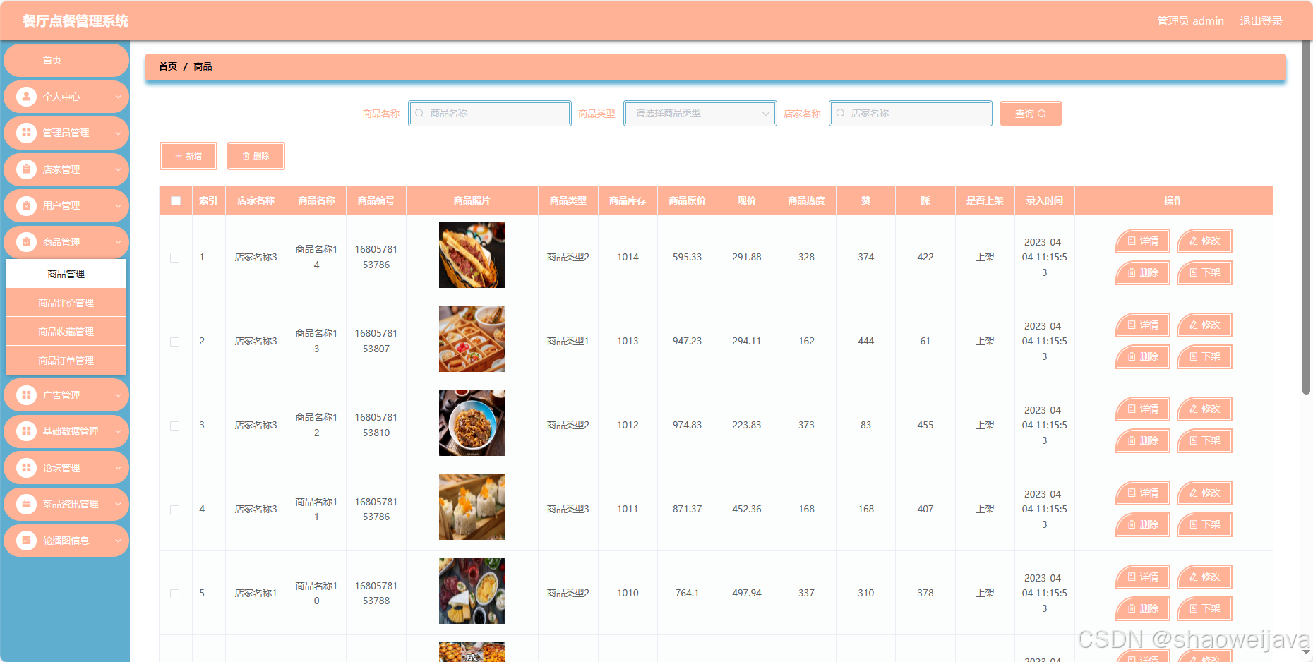 3. 商品管理:店家可以添加、编辑、删除商品信息。