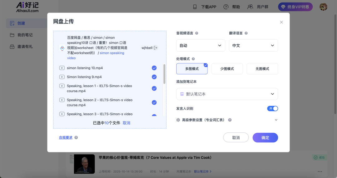 Ai好记现在已经支持音视频、网盘、多语种,未来还在准备加入文档解析与网页总结功能。