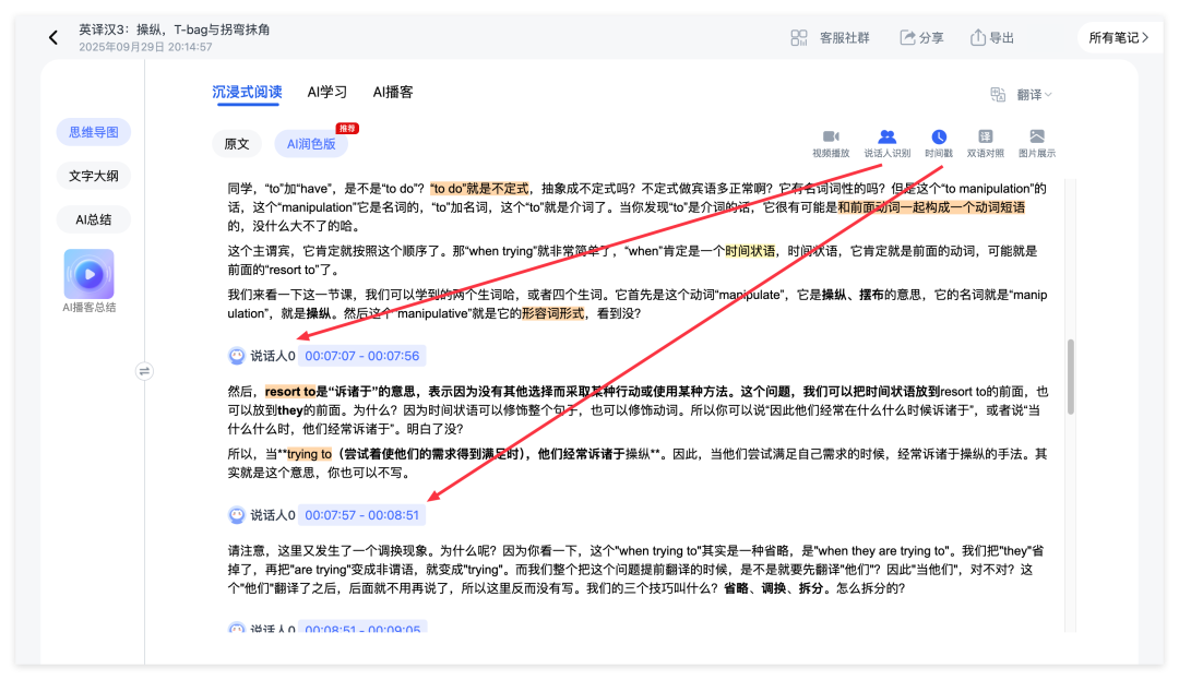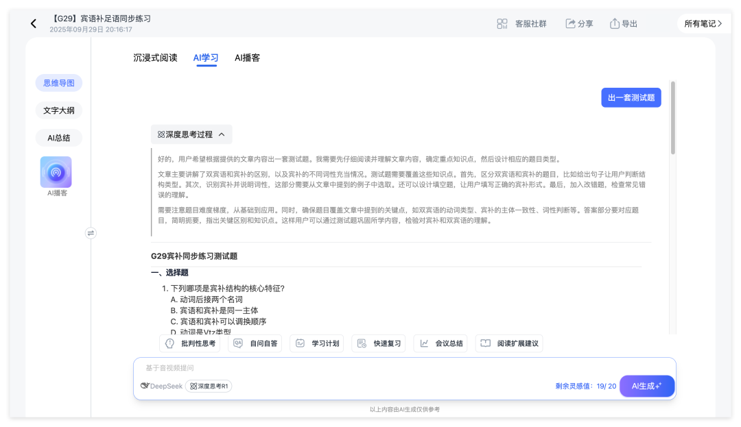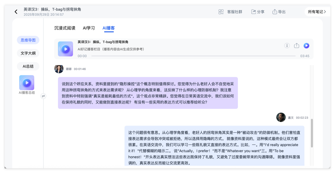 我可以直接点击旁边的AI学习,和模型实时展开深聊,进行深度学习,对话中复盘内容。