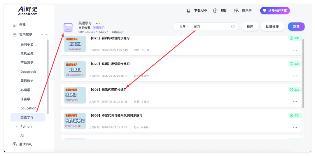 如果你像我一样喜欢边学边测,Ai好记自带的AI学习区你会爱上。