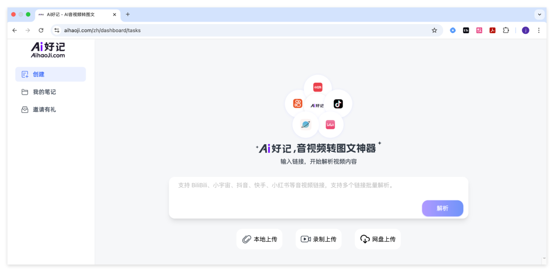 先说我最震惊的一点:Ai好记几乎支持全网的音视频解析。