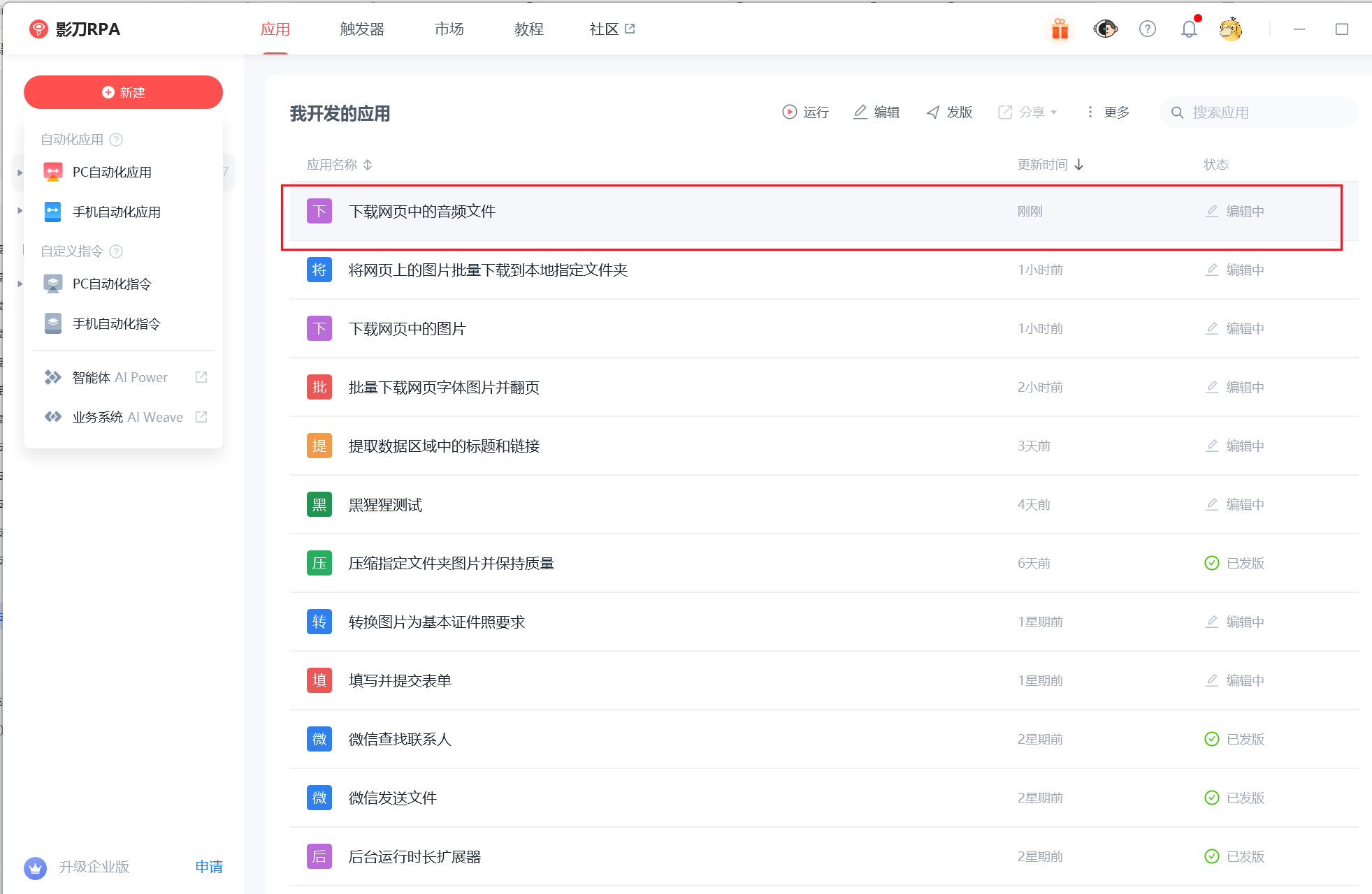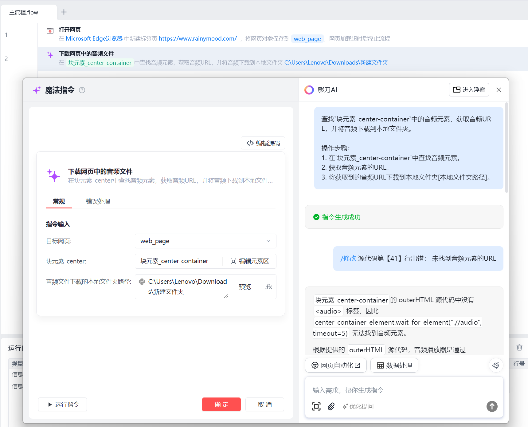 影刀RPA-魔法指令-邪修用一句话搞定 将网站的音频下载到电脑指定文件夹中 有多简单!!!