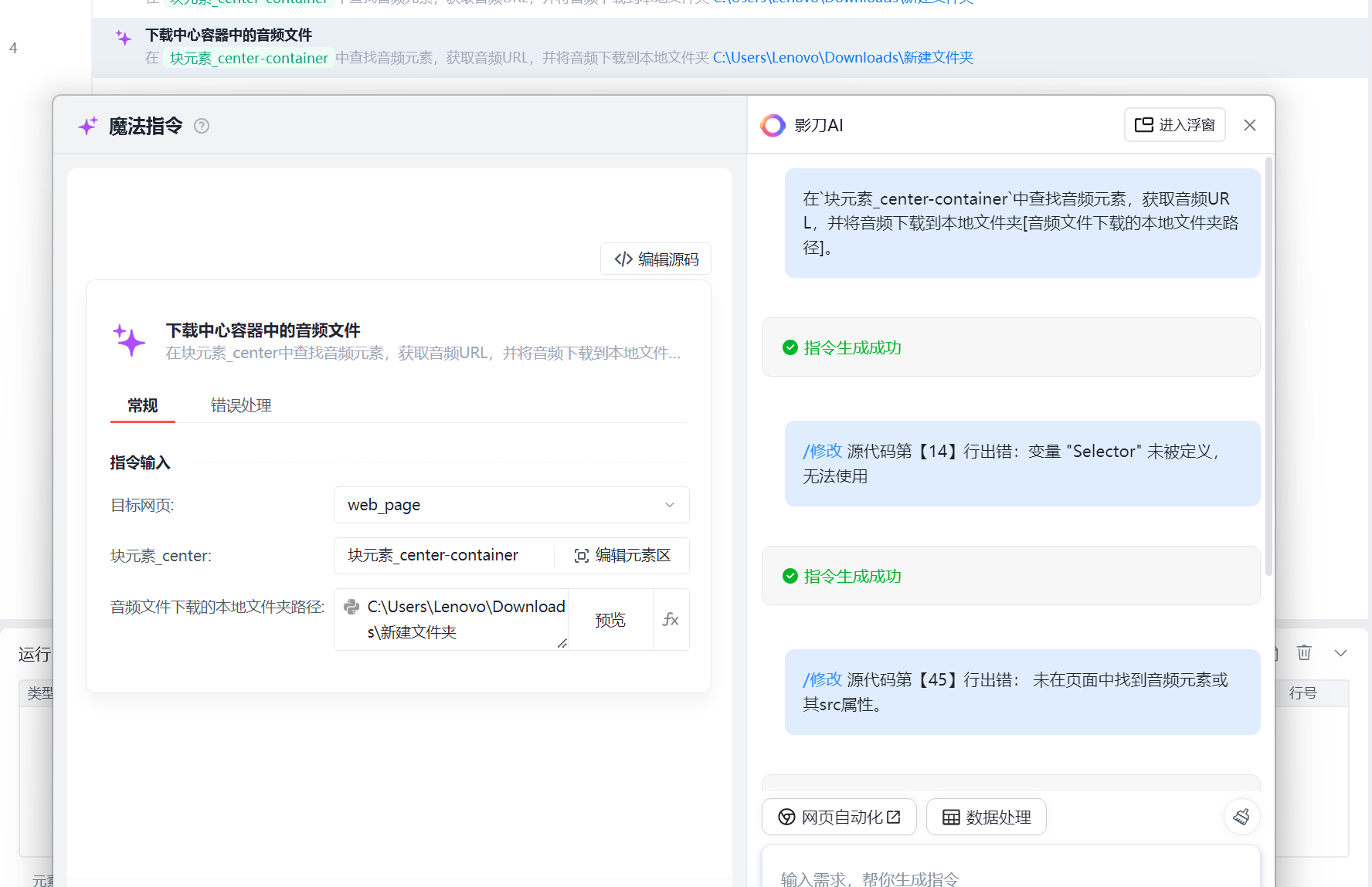 影刀官方发布活动啦!魔法指令yyds ,如何用一句话将网站的音频下载到电脑指定文件夹中