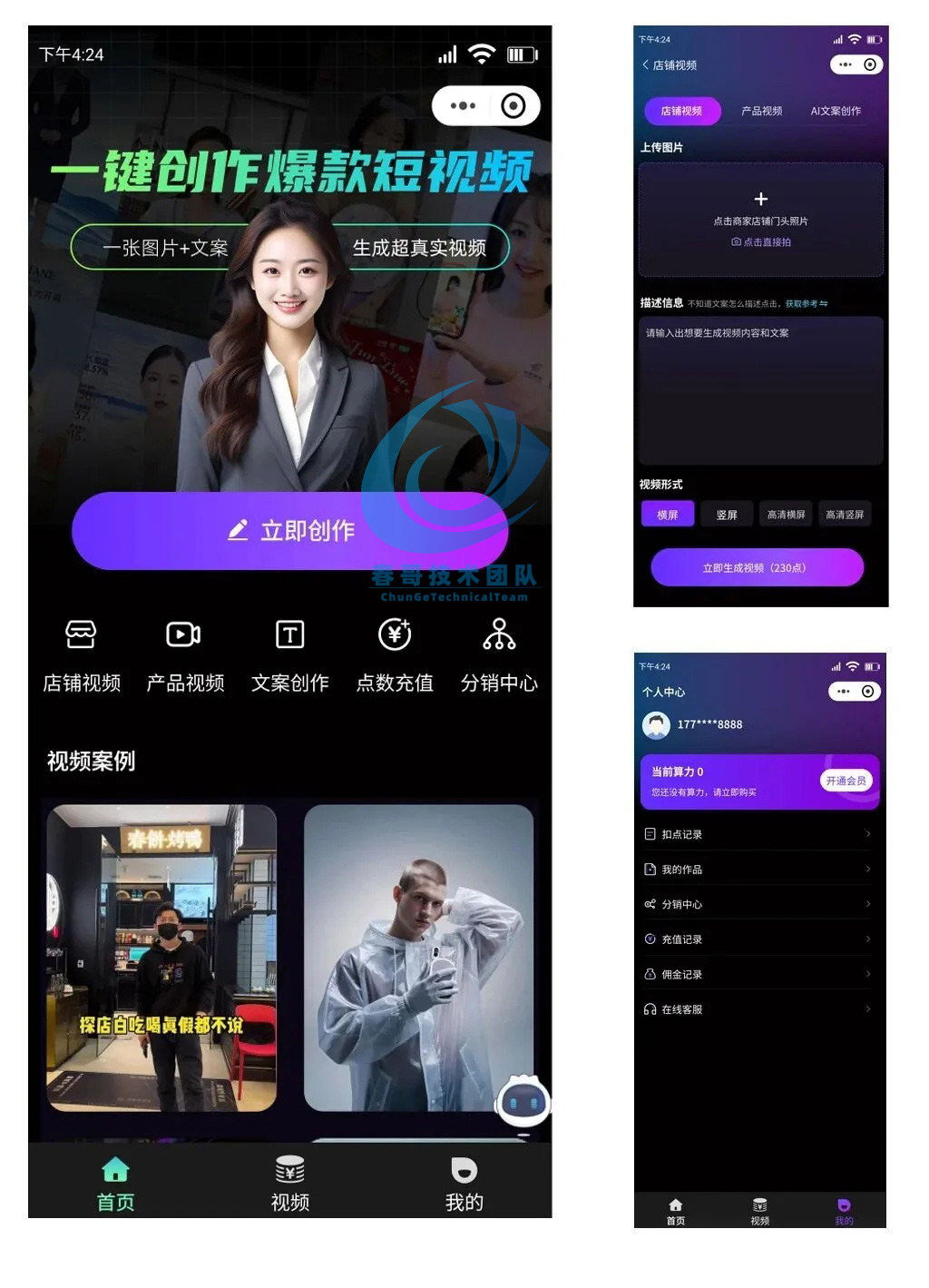 核心引擎:前沿Sora 2视频生成技术:系统深度集成并优化了Sora 2模型,提供业界顶尖的视频生成质量。支持通过文本描述生成长达数分钟的高清、连贯视频,具备出色的场景理解、角色一致性以及复杂的镜头运动模拟能力,让每个用户都能成为“好莱坞级”的导演。