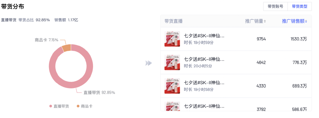 而高端品牌SK-II则未选择与第三方合作,通过品牌自播和商品卡的形式在提升销量的同时维护品牌调性;
