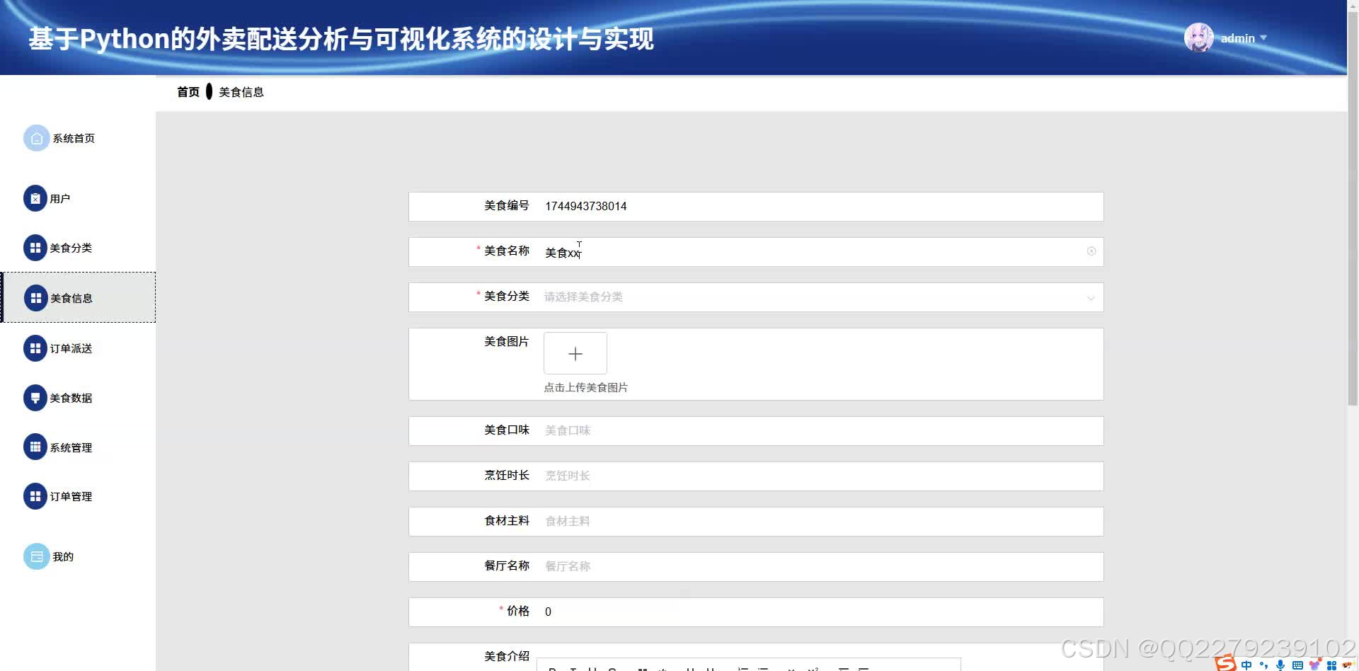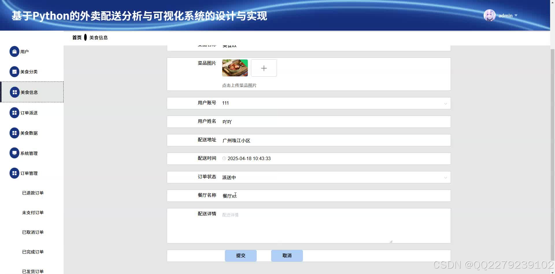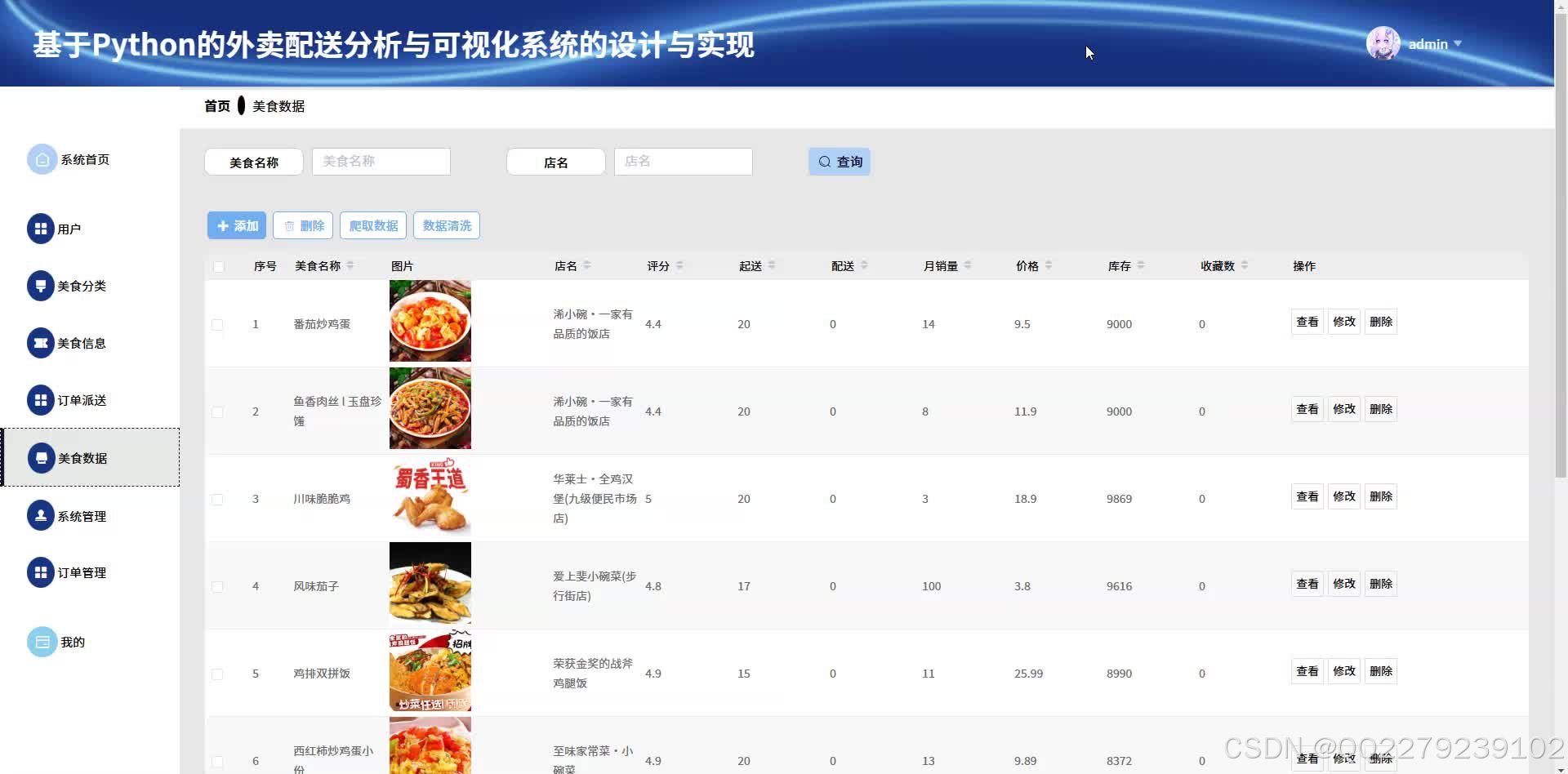 python基于大数据的美食外卖配送分析可视化系统(源码+文档+运行视频+讲解视频)