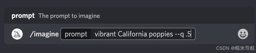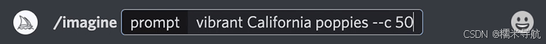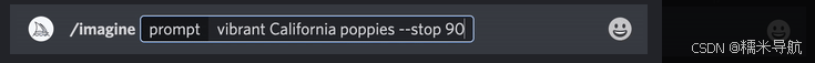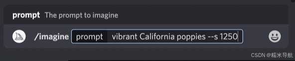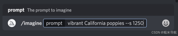 提示示例:/imagine prompt vibrant California poppies --testp --creative