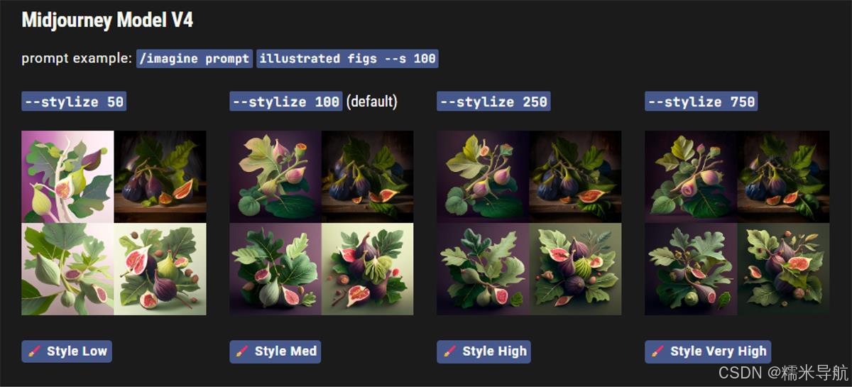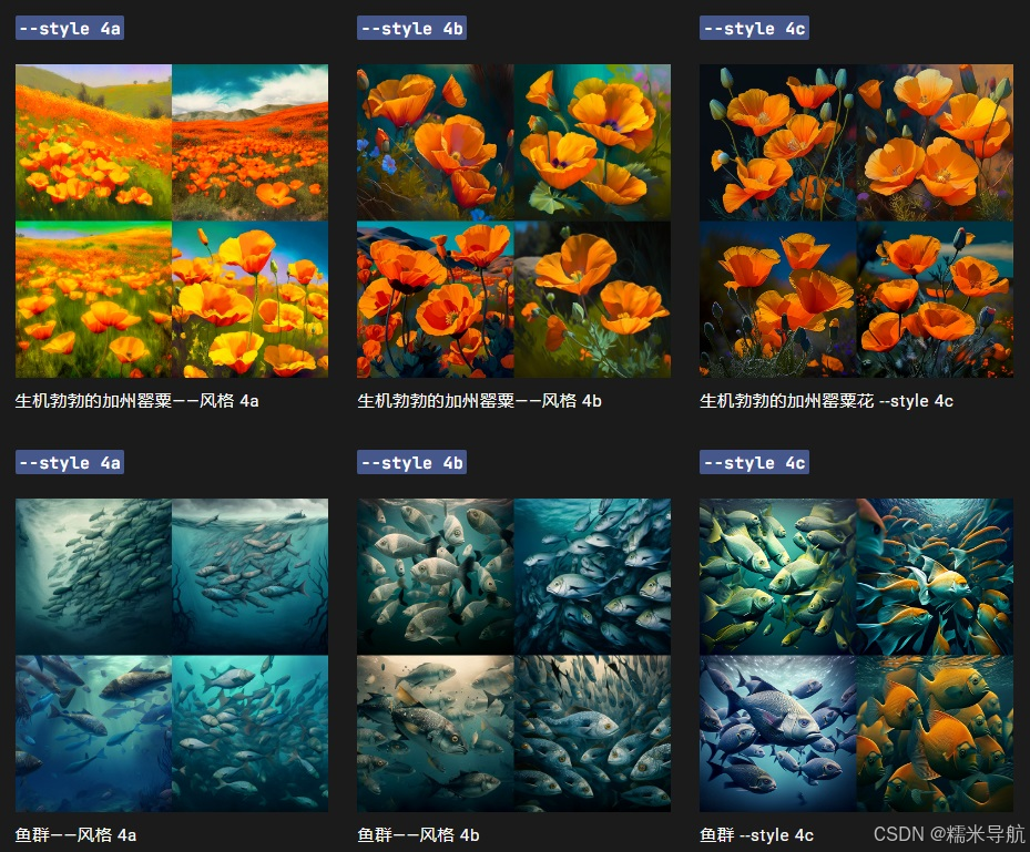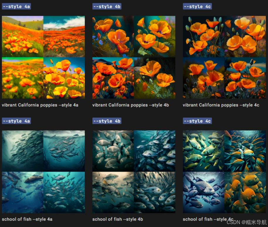Midjourney Model Version 4 具有三种略有不同的“风格”,对模型的风格调整进行了细微调整。通过在 V4 提示末尾添加--style 4a、--style 4b 或来试验这些版本。--style 4c