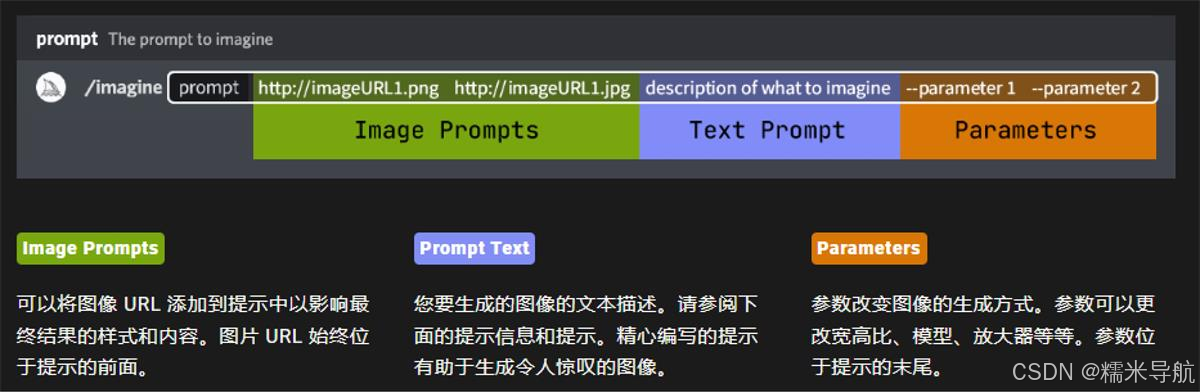 /docs 在官方的 Midjourney Discord 服务器中使用,可以快速生成本用户指南中涉及的主题链接;