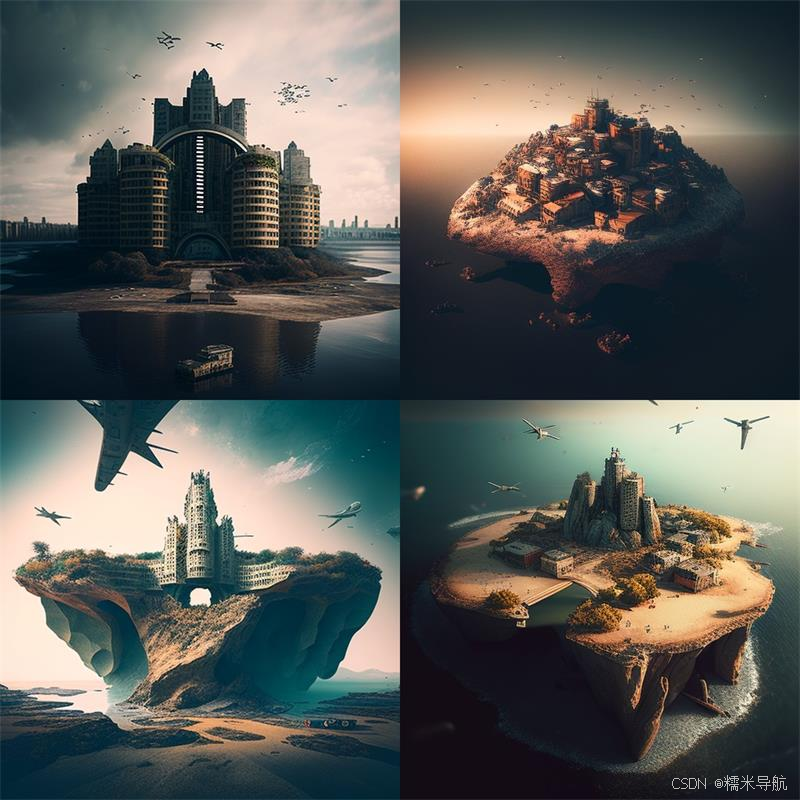 一个共产主义城市,建立在飞行的岛屿上,在底部有机制,从飞行的岛屿下面和远处看,柔和的调色板,电影风格,电影,摄影,锐利,哈苏,戏剧性的灯光,景深,中等镜头,柔和的调色板,80mm,高细节,Lightroom 画廊