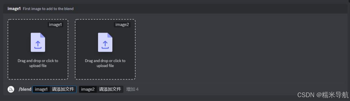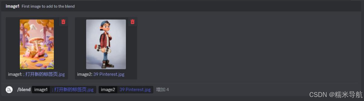 (这里只列出一些我们会用到的参数命令,其他的参数对我们学习AI绘画意义不大)1./ask获取问题的答案。你可以提一些问题让midjourney给你回答,类似FAQ;2./blend融图,一共可以上传6张图片,发送给机器人会帮你把上传的图片融合一起生成新的一组图片;3./docs在官方的MidjourneyDiscord服务器中使用,可以快速生成本用户指南中涉及的主题链接;4./fast切换