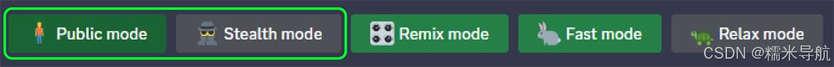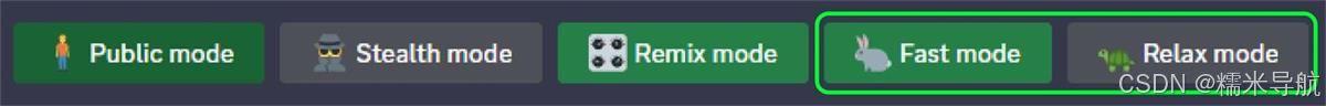 /stealth 对于专业计划的用户(60 美金/月):切换到隐身模式。意思是你生成的图片不在社 区展示;