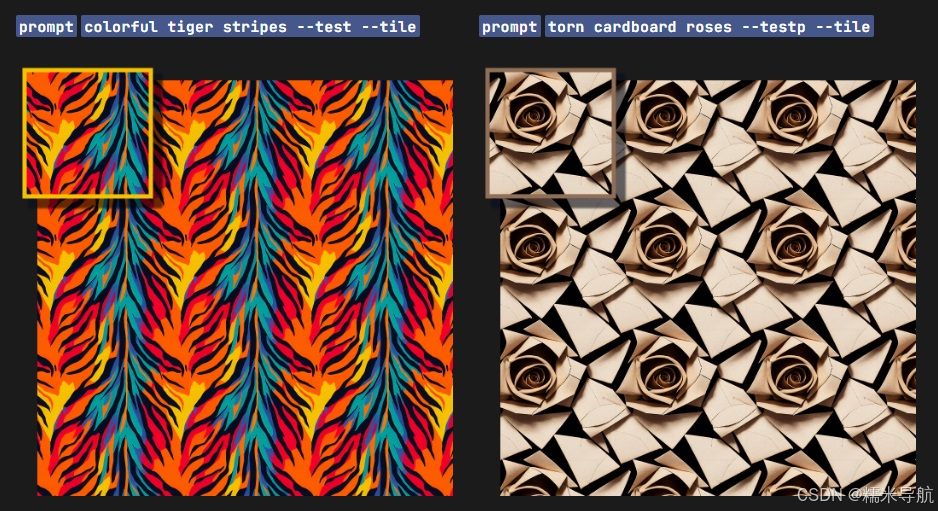 --tile 参数生成可用作重复拼贴的图像,以创建织物、壁纸和纹理的无缝图案。