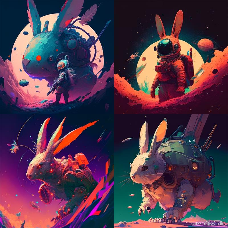 空间中的兔子怪物照片,劳里·格里斯利,吉卜力工作室,鸟山明,詹姆斯·吉勒德的风格,源信冲击,流行 pixiv 风扇盒,亚克力色板刀,4k,充满活力的颜色,devinart,在 artstation 上流行,低细节