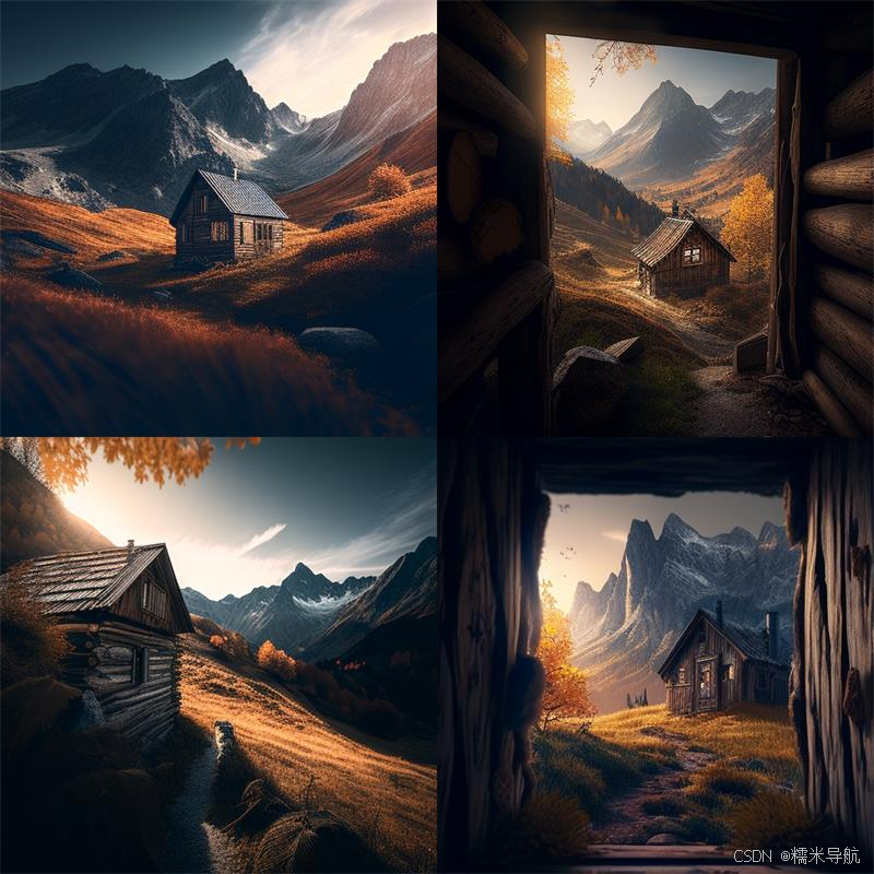 高山上的木屋,可以看到山谷,秋天的小麦和太阳,现实主义,复杂的细节,电影构图,电影照明,Lightroom 画廊,Behance 大赛冠军,专业摄影,无飞溅,低角度