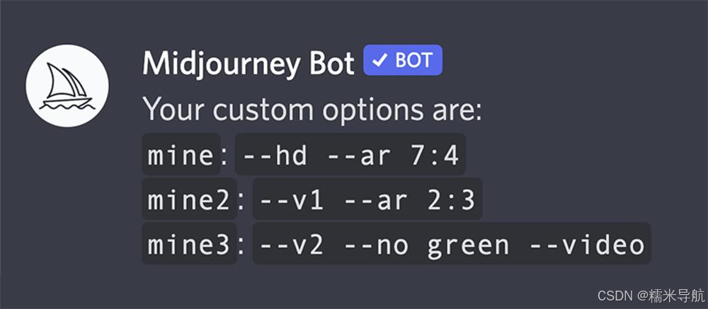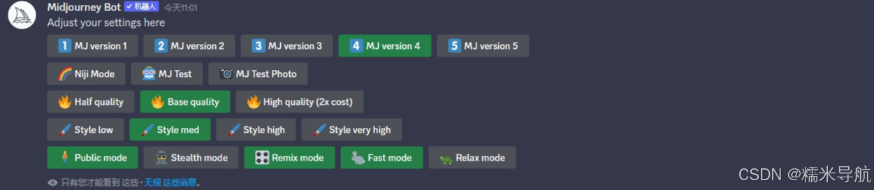 /settings 查看和调整 Midjourney Bot 的设置;