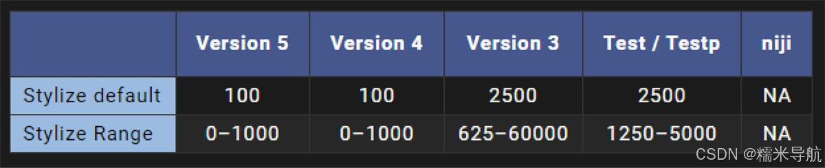 测试模型仅支持--stylize1250–5000 之间的值。