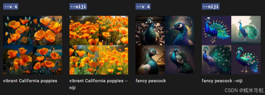 提示示例:/imagine prompt vibrant California poppies --niji